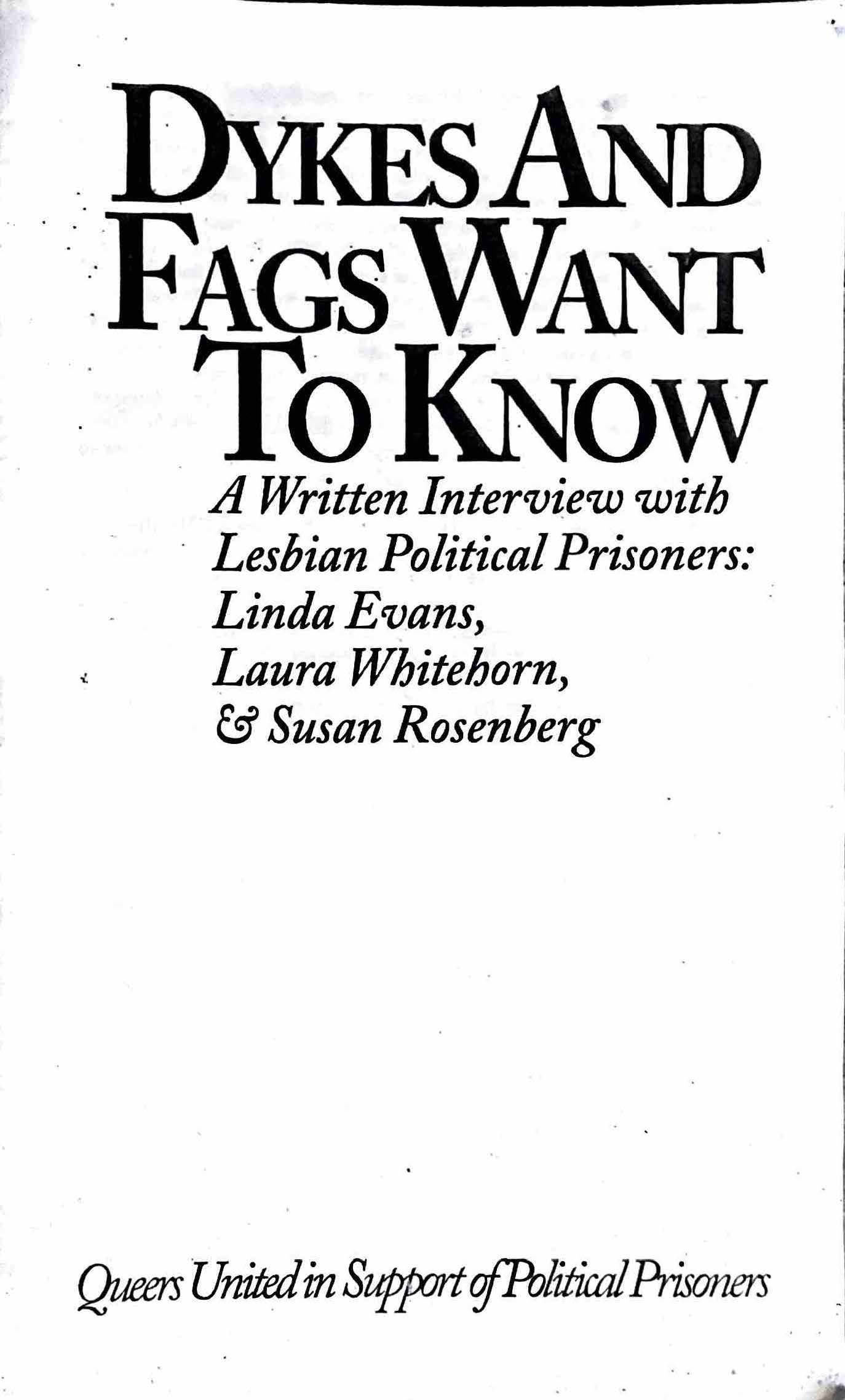 Subtitle - A Written Interview with Lesbian Political Prisoners: Linda Evans, Laura Whitehorn, & Susan Rosenberg